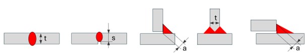 Wenn die Naht die volle Materialdicke des Bleches umfasst, erhält die Blechdicke den Zusatz „t“, ansonsten bezeichnet man die Dicke mit einem „s“. Bei Kehlnähten ist das kleinste rechtwinklige Dreieck unter 45° der tragende Querschnitt, der mit dem „a-Maß“ bezeichnet wird.