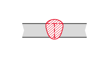 | Doppel-HY- oder Stegnaht: | Trotz beidseitiger Schweißnaht ist meist eine vollständige Durchschweißung nicht gefordert. Diese Anwendung ist sehr dicken Blechen vorbehalten, auch ohne definierten Spalt. | ![]() | ![]() |